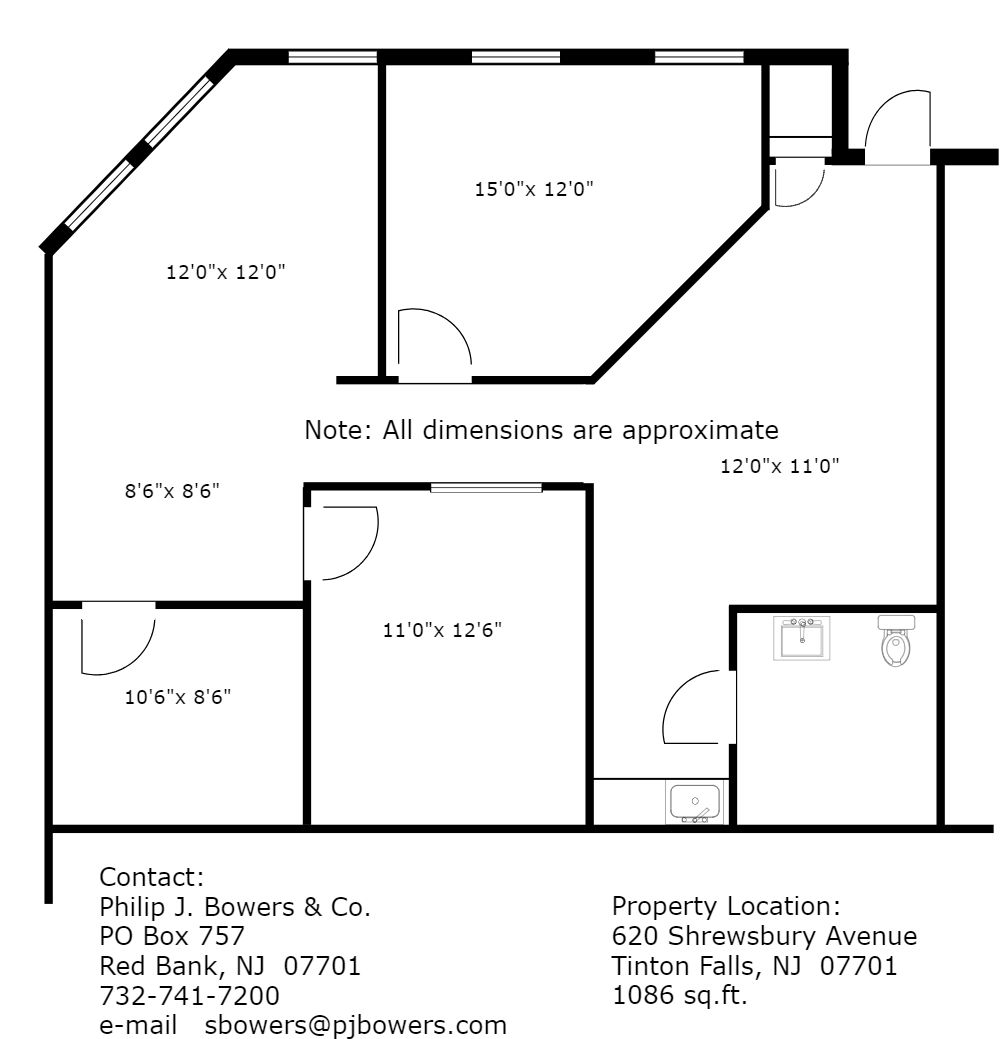 First floor space with four private offices, reception, kitchenette, bathroom and many windows. Tenant pays utilities and increases in operating expenses over a base year. Ample parking and excellent signage. Available mid November 2025. We pay a 5% commission to brokers.